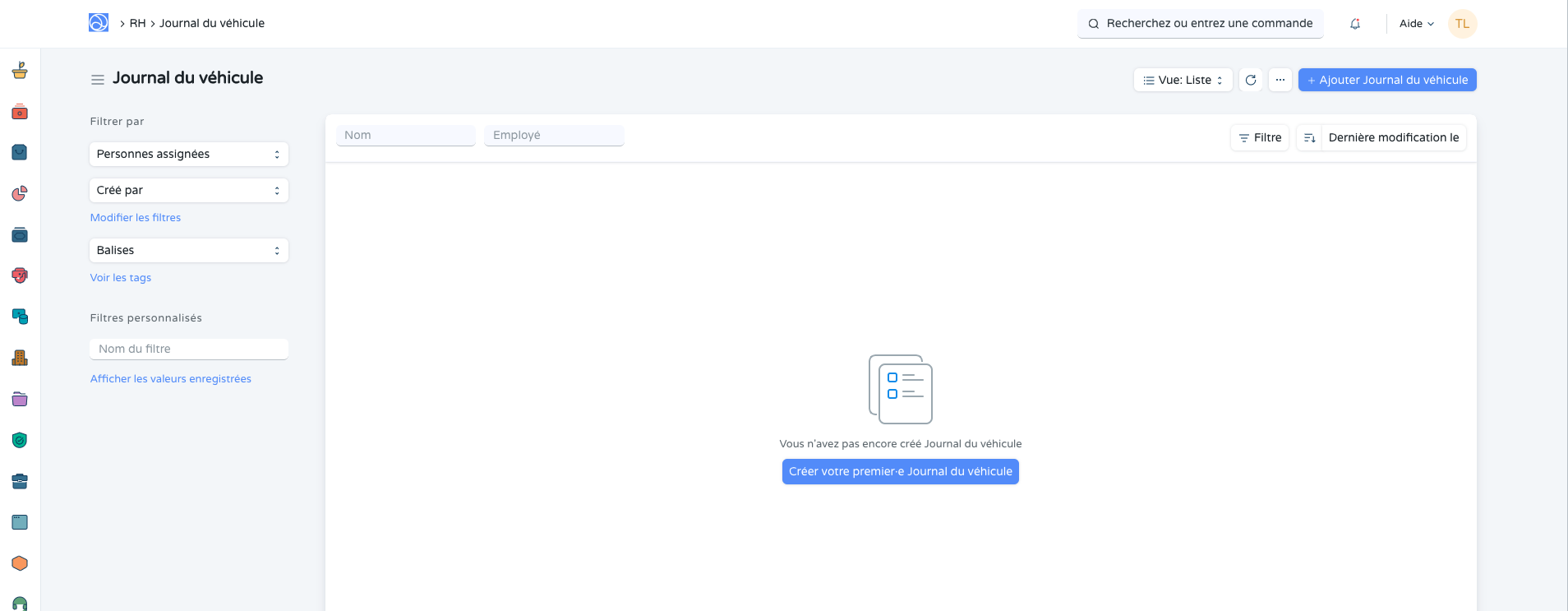 - Accédez à la liste des journaux de véhicule, cliquez sur Nouveau.