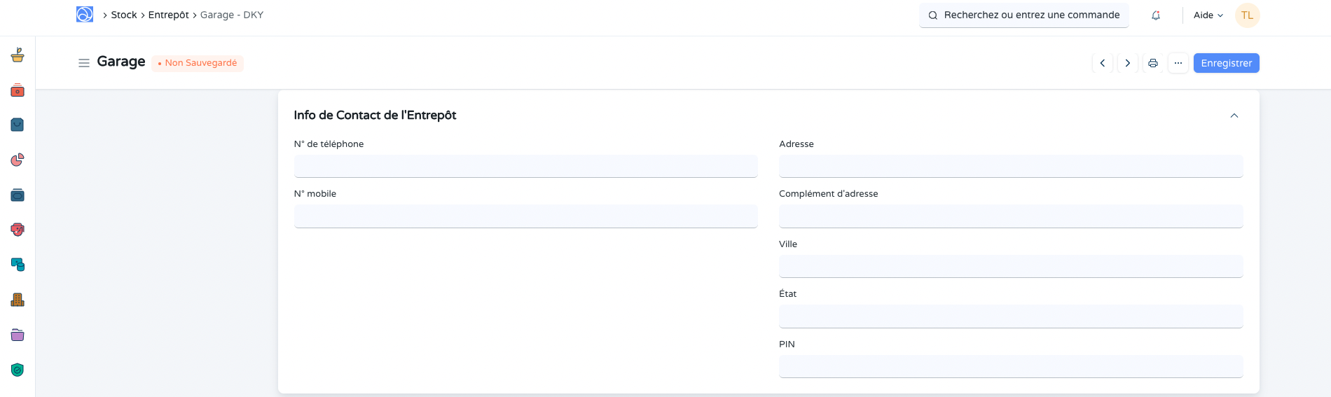 - Remplir les différents champs pour complèter la fiche de l'entrepôt :